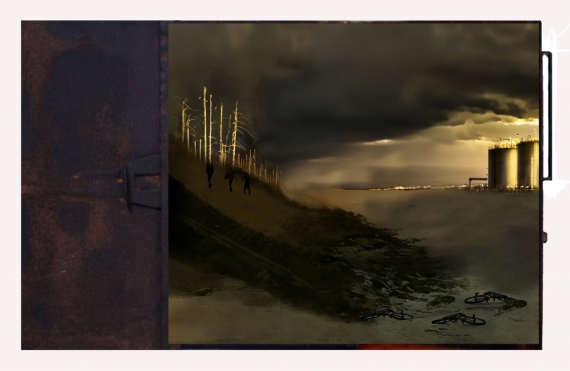 Formaat 23,5 bij 42 in bewerkte box: oplage 1 Afbeelding zonder box en epoxy: Oplage max.9. Afdrukformaat in overleg. Compositie van digitaal samengestelde afbeeldingen. Niet alleen oorlog of geweld doet mensen vluchten. Door extreme droogte, hevige stormen, overstromingen en bosbranden als gevolg van menselijk ( niet) handelen zullen er steeds meer mensen op drift raken en klimaatvluchteling worden. "Ik geloof echt dat we in deze generatie in het reine moeten komen met de natuur en ik denk dat we worden uitgedaagd, zoals de mensheid nog nooit is uitgedaagd, om onze volwassenheid en beheersing te bewijzen, niet over de natuur, maar over onszelf". Een uitspraak gedaan door ecoloog Rachel Carsons in 1963!